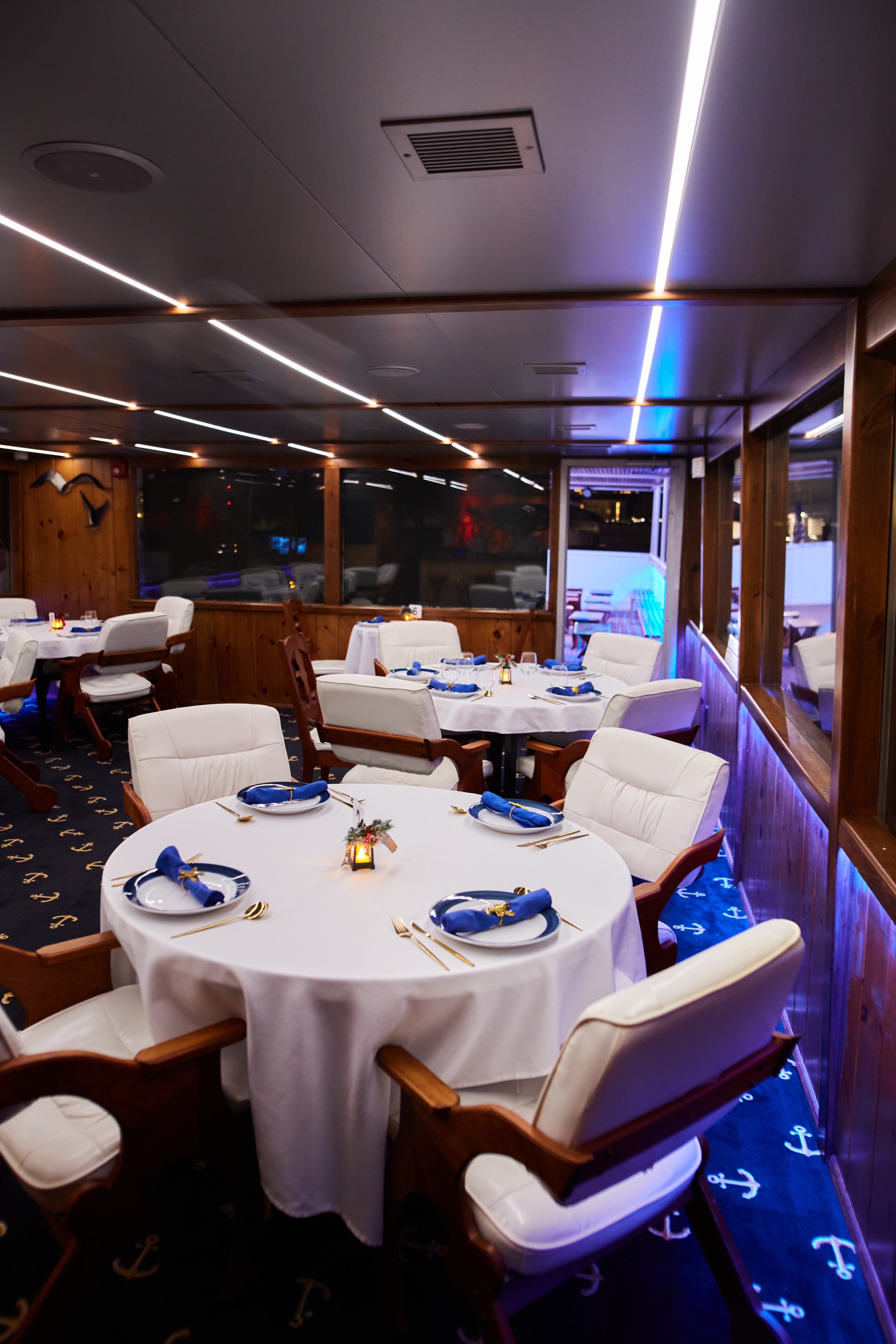 2,500 Square Feet • Launched 2023Our premier vessel for dinner cruises and private events. With 2,500 sq. ft. across 2 decks, accommodating up to 140 guests, it offers an intimate setting. Enjoy bespoke finishes, complemented by two bars and outside seating for the perfect views.